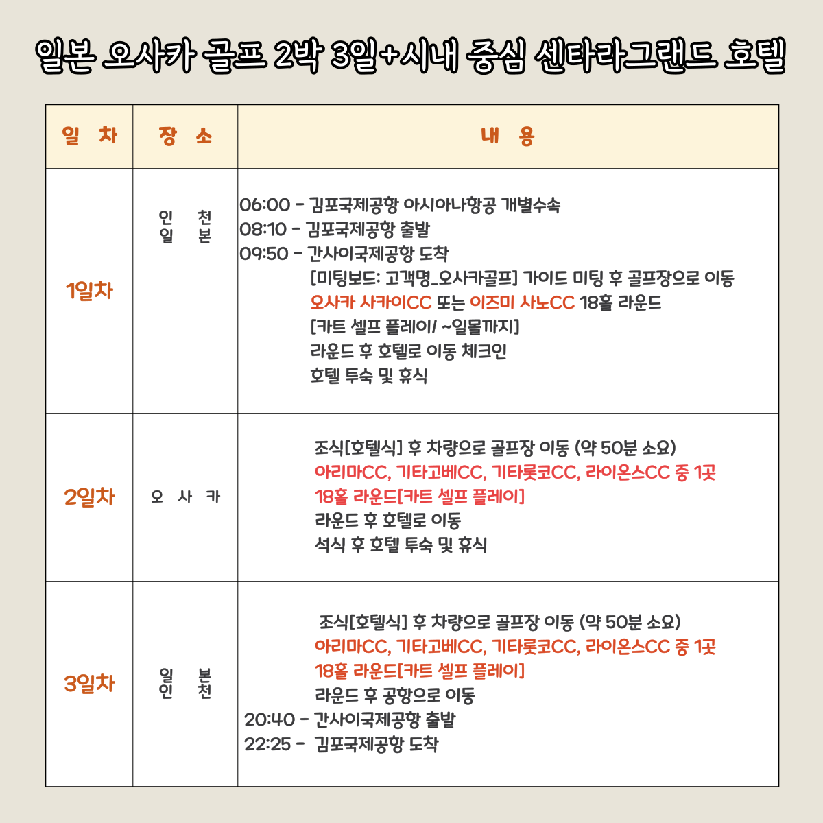 [일본 오사카] 2박 3일 다색골프