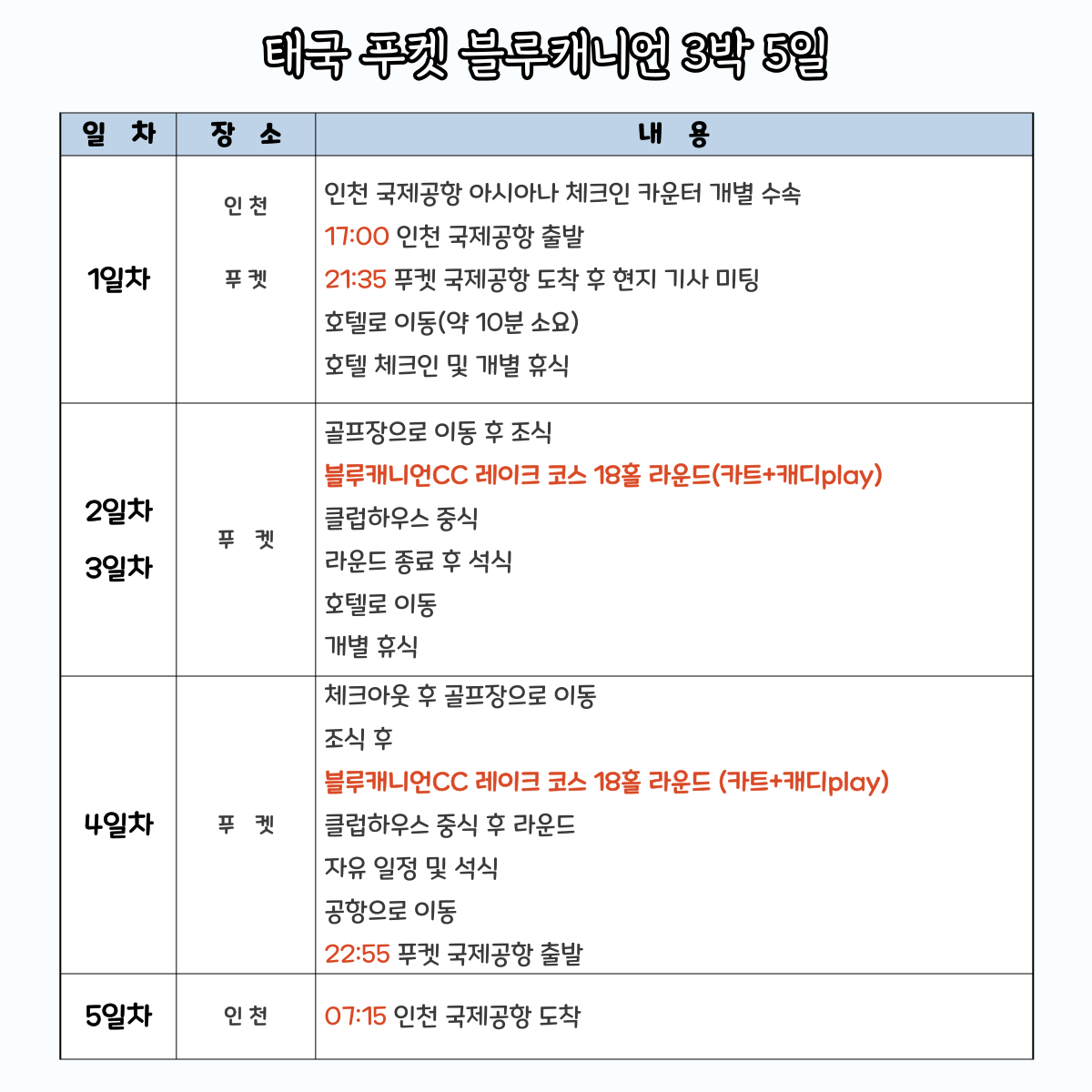 54홀/ 3박 5일